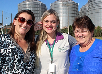 | Na foto acima as participantes de Pinhão e funcionários da Coamo e ao lado a instrutora Fabíola Weiss com Rosi Stachechen e Gilcléia Hammel |
