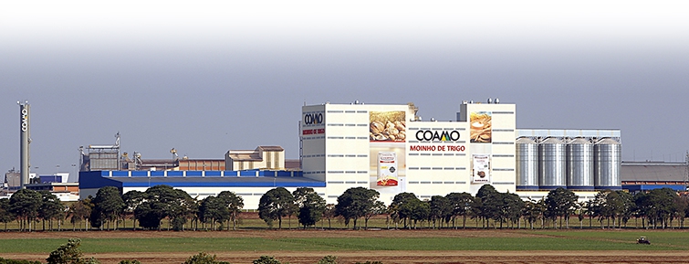 O moinho de trigo da Coamo, mais novo empreendimento da cooperativa, localizado no parque industrial, em Campo Mourão (Centro-Oeste do Paraná) está com nova comunicação visual, onde foram instalados dois painéis na parte externa. Quem trafega pela rodovia BR-487, KM 197, de longe já consegue visualizar um painel com a Farinha de Trigo Coamo e outro com a Mistura para bolo de chocolate da Coamo Linha fácil.