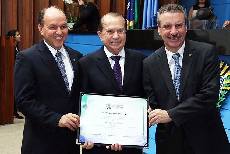 Junior Mochi, presidente da Assembleia Legislativa do MS, Gallassini, e Paulo Corrêa, deputado que propôs o título