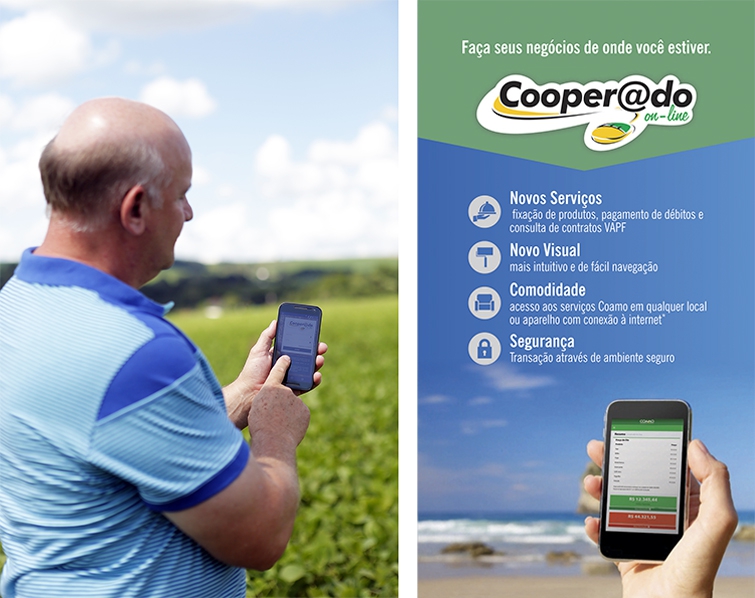 Comodidade e segurança. Esses são dois pontos destacados pelo superintendente em relação ao novo Cooperado On-Line. “É um serviço seguro, pois a Coamo usa tecnologia de ponta em todo o processo e quanto a comodidade, é que os cooperados poderão aproveitar as oportunidades de mercado de onde estiverem, consultando os preços e fazendo a fixação”, comenta Antonio Sergio. Ele acrescenta que o Cooperado On-line visa facilitar a gestão da propriedade rural na comodidade de sua casa, escritório ou por meio de dispositivo móvel. De acordo com o superintendente Administrativo da Coamo, Antonio Sergio Gabriel, a cooperativa acompanha toda a evolução tecnológica para que o quadro social possa acessar os mais variados serviços por meio de dispositivos móveis. Ele recorda que, recentemente, foi lançado o programa Mobilidade Agronomia em que as informações técnicas são acessadas de qualquer lugar por um dispositivo móvel. “Essa é a tendência: acessar tudo de qualquer lugar. A política da Coamo é disponibilizar produtos e serviços aos cooperados, com o objetivo de prestar o melhor atendimento”, comenta.