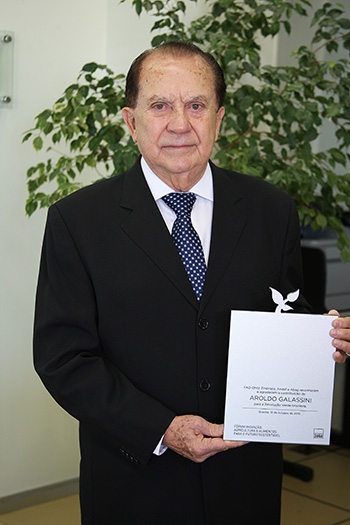 O engenheiro agrônomo José Aroldo Gallassini, presidente da Coamo Agroindustrial Coope- rativa, recebeu o título de Herói da Revolução Verde, em sessão especial realizada no Senado Federal, dia 13 de outubro, no evento Fórum Inovação, Agricul- tura e Alimentos para o Futuro Sustentável – Desafio 2050, em homenagem aos 70 anos de atuação da FAO – Organização das Nações Unidas para a Agricultura e Alimentação. O prêmio Heróis da Revolução Verde Brasileira é concedido a dez personalidades gestores e pesquisadores do setor agropecuário, que contribuí- ram para que o Brasil fosse capaz de atender à deman- da interna da população e ainda se tornar um dos maio- res produtores mundiais de alimentos.