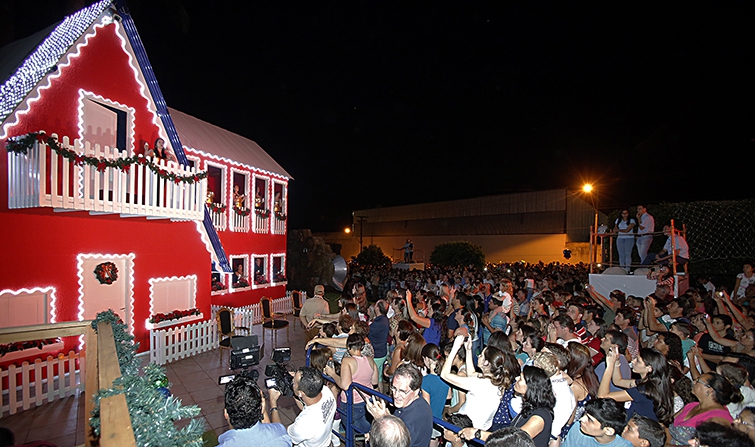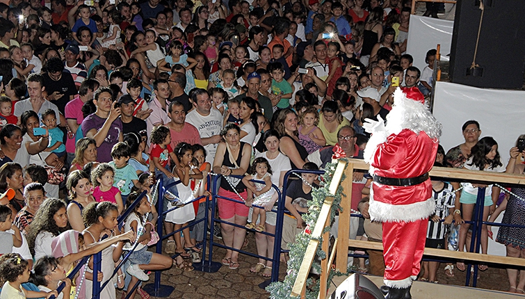 Um dos momentos mais esperado da noite pelas crianças, foi a chegada do Papai Noel. Dessa vez, a surpresa foi que o bom velhinho estava acompanhado da Mamãe Noel e do Titio Noel, uma oportunidade a mais para as crianças se aproximarem deles.