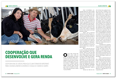 De autoria de Ana Paula Bento Pelissari e Wilson Bibiano Lima, a reportagem “Cooperação que desenvolve e gera renda”, publicada na edição de outubro/15 da Revista Coamo ficou em segundo lugar na categoria “Mídia Cooperativa” do prêmio Ocepar de Jornalismo 2015. A premiação foi na noite de 02 de dezembro, em Curitiba, no auditório do Sistema Ocepar. A matéria confirma em várias páginas a importância do cooperativismo de crédito para o desenvolvimento econômico e social do homem do campo, mostrando alguns dos benefícios disponibilizados pela Credicoamo e depoimentos dos cooperados, usuários dos serviços oferecidos pela cooperativa de crédito rural dos associados da Coamo.