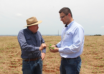 | Anselmo Coutinho com o agrônomo Carlos Vinicius Precinotto, do Detec da Coamo em Pitanga |
