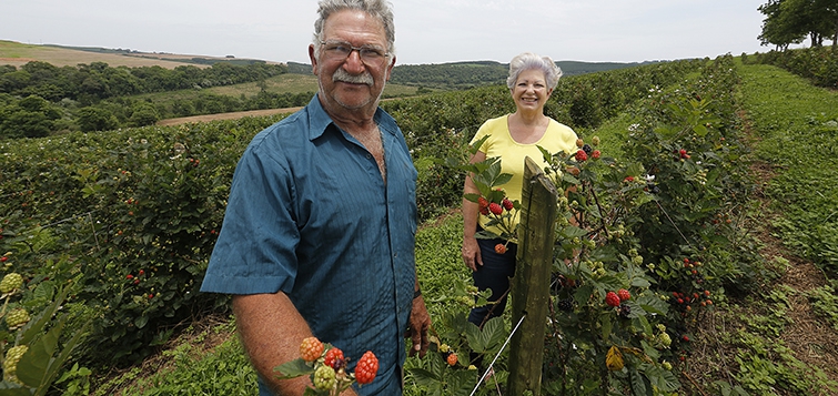 Quando se fala em diversificação o que vem à mente é a vantagem de ter renda o ano inteiro. Mas, muito além disso, diversificar é sinônimo de qualidade de vida para o cooperado da Coamo em Reserva (Centro-Norte do Paraná), Casemiro Pagano e de sua esposa Irma Oliveira Fonseca. Na propriedade de 70 alqueires, localizada em Tibagi, eles criam carneiros, gado e peixe, além de cultivar amora preta, que por sinal é a ‘menina dos olhos’ do casal.
