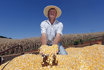 Laércio Dalla Vecchia, feliz com os resultados da colheita de milho verão