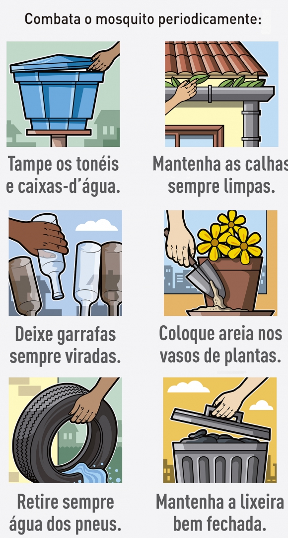 › Utilize telas em janelas e portas, use roupas compridas, se vestir roupas que deixem áreas do corpo expostas, aplique repelente nessas áreas.