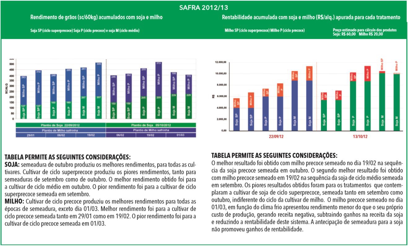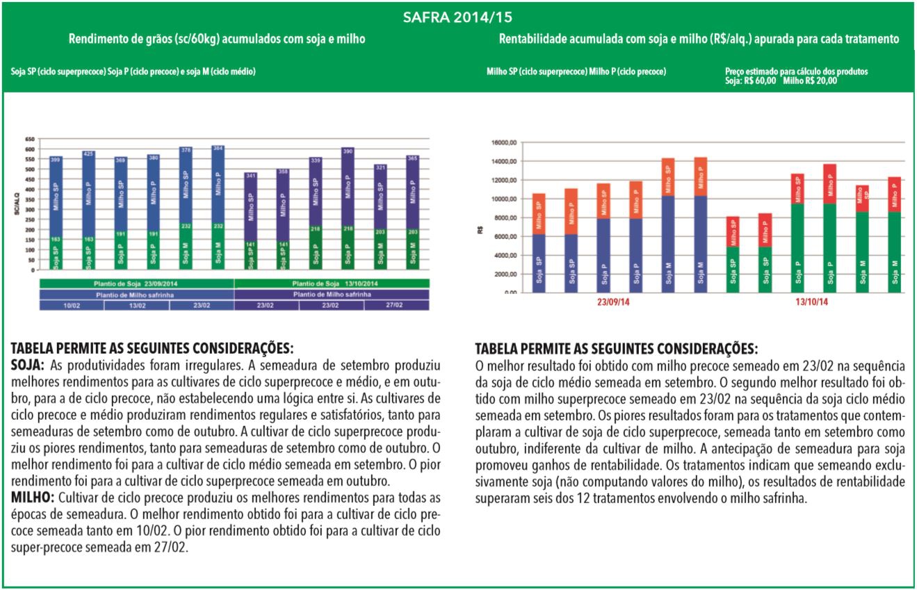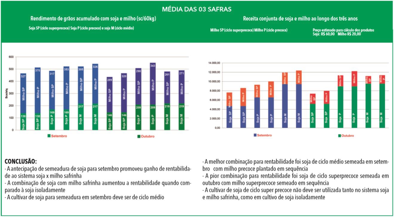 Outro ponto citado pelo agrônomo é o fato de o produtor antecipar ao máximo a semeadura da soja e utilizar cultivares de ciclo superprecoce visando ganhar alguns dias para plantar o milho mais no cedo. "A expectativa é que se consiga a colheita mais cedo da soja. Contudo, na prática, não há uma correlação direta entre antecipar semeadura e colher mais cedo, especialmente para a cultivar de ciclo super precoce. Semeaduras mais antecipados sob temperaturas baixas podem causar distúrbios fisiológicos na soja, prolongando o ciclo e frustrando em parte este propósito”, comenta Costa.