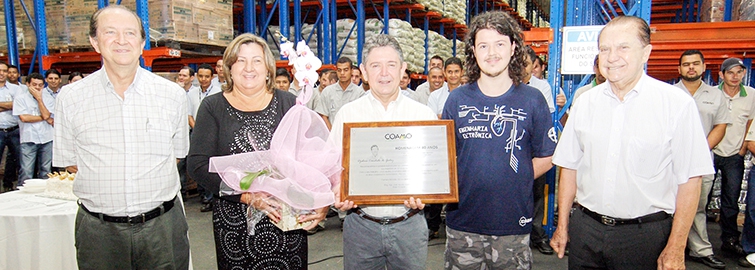 Djalma recebeu o reconhecimento da diretoria e dos colegas no seu ambiente de trabalho, no departamento de Distribuição de Alimentos, no Parque Industrial, em Campo Mourão. “Hoje é um dia ímpar para todos nós da Coamo que estamos em uma empresa jovem que completará 44 anos em novembro. Somos uma empresa conceituada, de sucesso e admirada nos segmentos do agronegócio, cooperativismo e empresarial brasileiro. Ficamos felizes e agradecemos o Djalma pelos seus 40 anos de Coamo. Temos orgulho deste feito e parabenizamos o primeiro funcionário ativo a completar 40 anos de serviços”, comemora o presidente da Coamo, José Aroldo Gallassini.