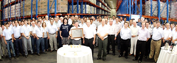 SEGURANÇA - Falando aos presentes, Djalma Godoy lembrou do seu início e da satisfação em viver este momento único celebrando 40 anos de Coamo. “Acho que entrei na Coamo por teimosia, pois todo dia vinha na Coamo procurar emprego, até que foi me dada uma chance e estou até hoje. Completar 40 anos não é uma data qualquer, é uma vida toda. Partilho esta emoção e alegria com todos que contribuíram e colaboram para o meu desenvolvimento pessoal e profissional. Hoje é um dia que não esquecerei jamais”, considera o primeiro funcionário a completar 40 anos de Coamo. “Minha missão é planejar e coordenar a logística de armazenamento e distribuição dos Alimentos Coamo, a partir da produção do produto acabado até os pontos de vendas dos clientes”, resume sua missão na empresa.