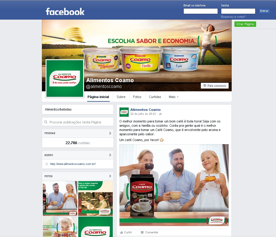 Tem novidade no ar! Os Alimentos Coamo agora também estão no Facebook. É mais um canal de comunicação com os consumidores e clientes. Aquelas receitas que todo mundo gosta, dicas e notícias estarão mais perto de você. Além disso, há anúncios nos sites Globo.com, G1, R7, Tudo Gostoso e Cyber Cook com link’s para o site dos Alimentos Coamo.