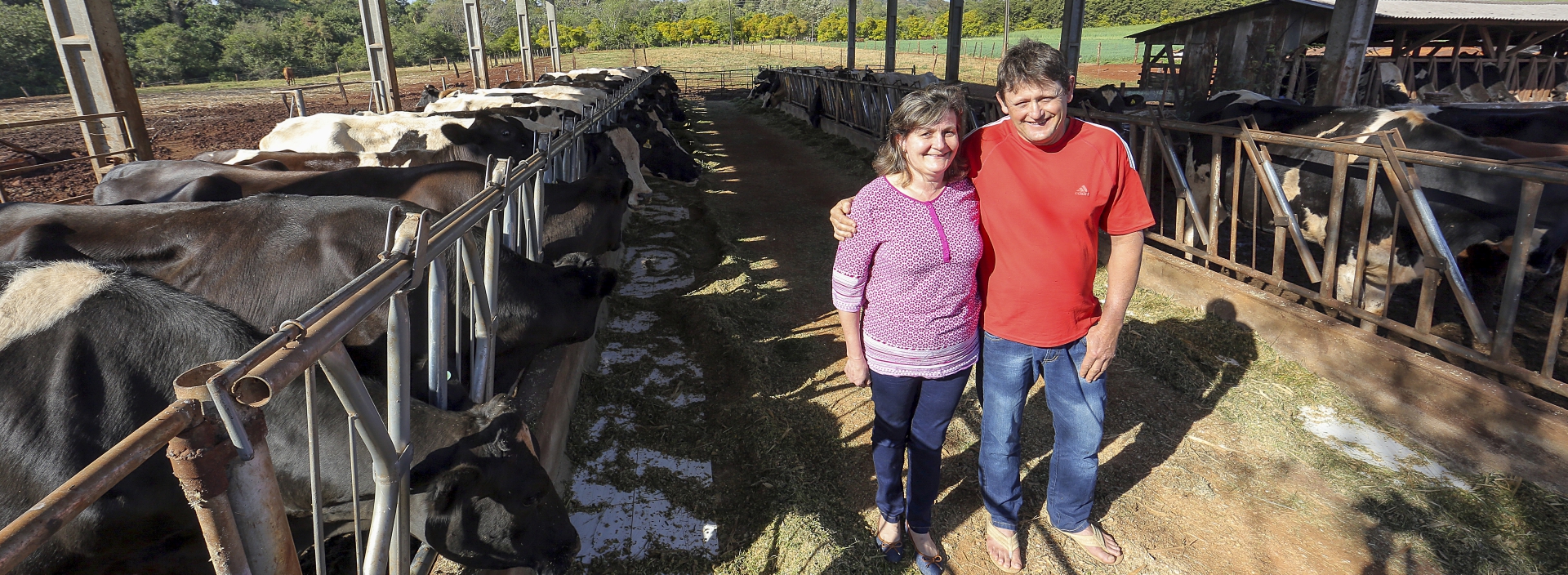 Quando decidiram dizer sim, o casal Lilia e Silécio Hoscheid, optantes da Coamo no distrito de Dois Irmãos, na região de Toledo (Oeste do Paraná), já sabiam que somente conseguiriam realizar sonhos, se trabalhassem juntos, um apoiando o outro. E foi justamente assim que a equipe de reportagem da Revista Coamo os encontrou ao chegar na propriedade. Os dois estavam terminando a rotina de ordenha das vacas. Ao todo são 42 em lactação.