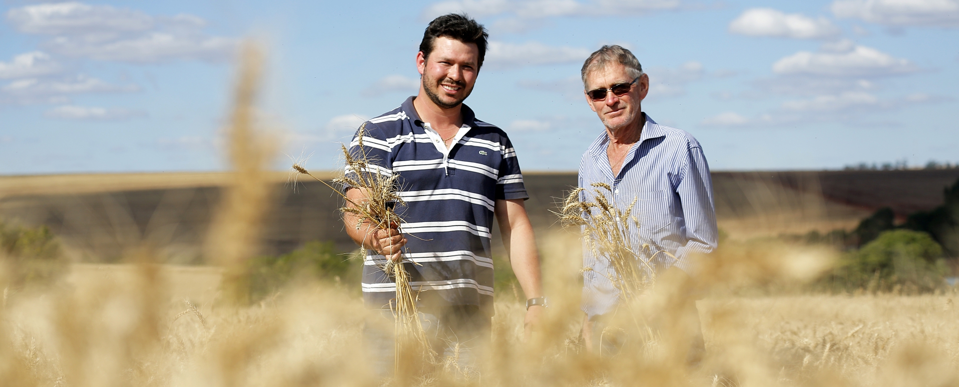 | Altamir Paula Neves ao lado do filho Willian, de Mamborê, comemoram bons resultados com o trigo |