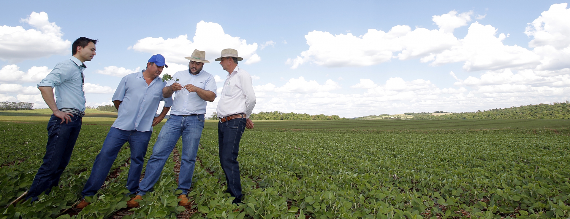 | Edir Fernando Machado, encarregado da Agência da Credicoamo em Fênix, Leandro de Ângelo, cooperado, Leonardo Luiz Batista, engenheiro agrônomo do departamento Técnico da Coamo em Fênix, e Carlos de Ângelo, cooperado |