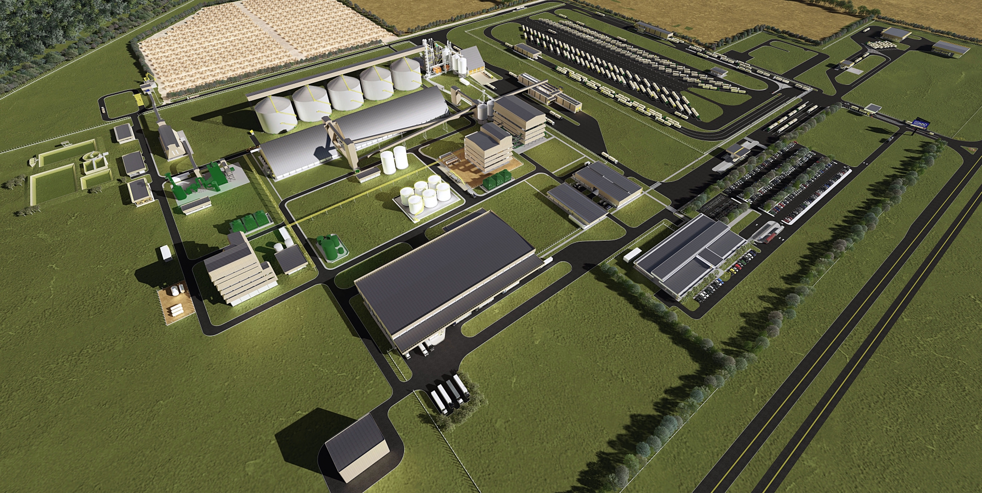 | Projeto em 3D das novas indústrias da Coamo no Mato Grosso do Sul |
