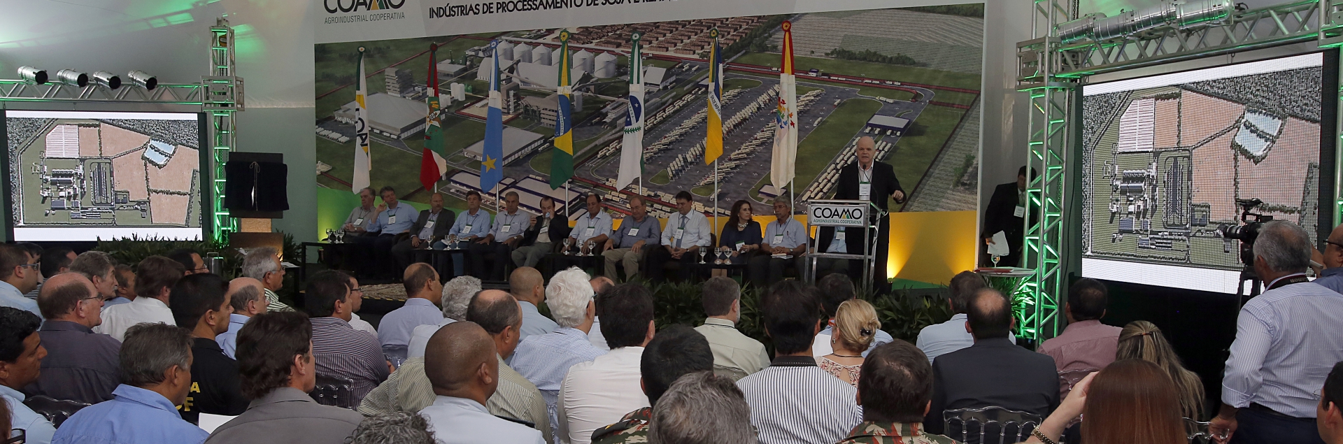 O presidente da Coamo, engenheiro agrônomo José Aroldo Gallassini, destacou a necessidade da construção das novas indústrias e a escolha da região de Dourados para instalação. “O volume de soja recebido pela Coamo no Mato Grosso do Sul comporta perfeitamente a instalação de uma moderna indústria esmagadora de soja e de uma refinaria de óleo de soja em Dourados, justificando plenamente a redução de custo com o transporte do produto já industrializado ao invés de transportá-lo in natura para sua industrialização em Campo Mourão ou em Paranaguá”.