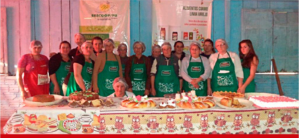 Cooperadas, esposas e filhas de cooperados, têm a oportunidade de aprender novos pratos e técnicas de culinária, além de artesanato, para garantir uma renda extra para a família. Os cursos sociais são realizados em toda a área de ação da Coamo. Anualmente, centenas de participantes levam para casa mais conhecimento e oportunidade. Para o próximo ano, estão programados novos cursos.