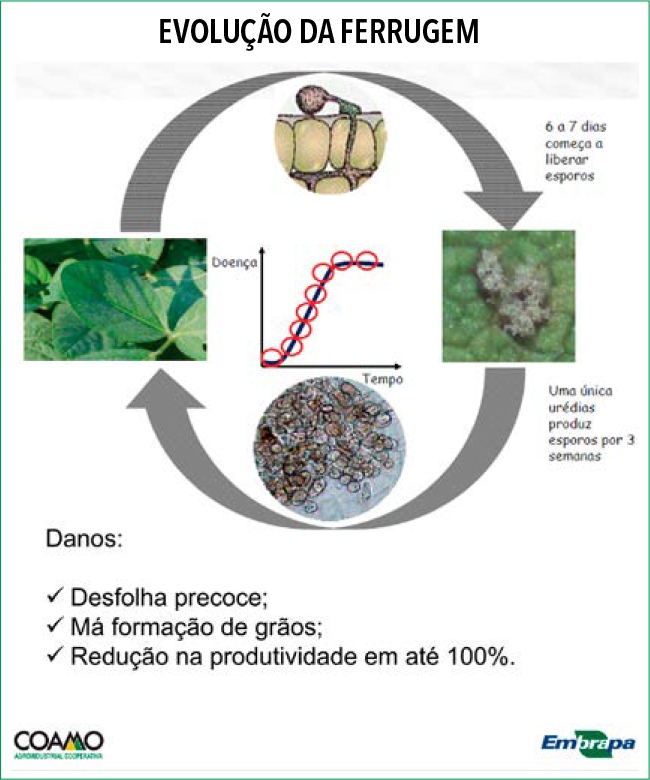 Na análise do engenheiro agrônomo José Marcelo Rúbio, do Detec da Coamo em Mamborê (Centro-Oeste do Paraná) e coordenador a estação, o clima é o termômetro que determina se haverá uma maior condição para a presença da ferrugem e qual a severidade. “Todas as pesquisas demonstram que temperatura não é um fator tão importante quanto imaginávamos para ocorrência do fungo. O que determina mesmo se terá uma epidemia severa da doença é a quantidade de chuva que teremos no período. Sabendo disso precisamos ser mais cuidadosos com o intervalo de aplicações dos fungicidas não alongando demais essa operação”, orienta Rúbio.