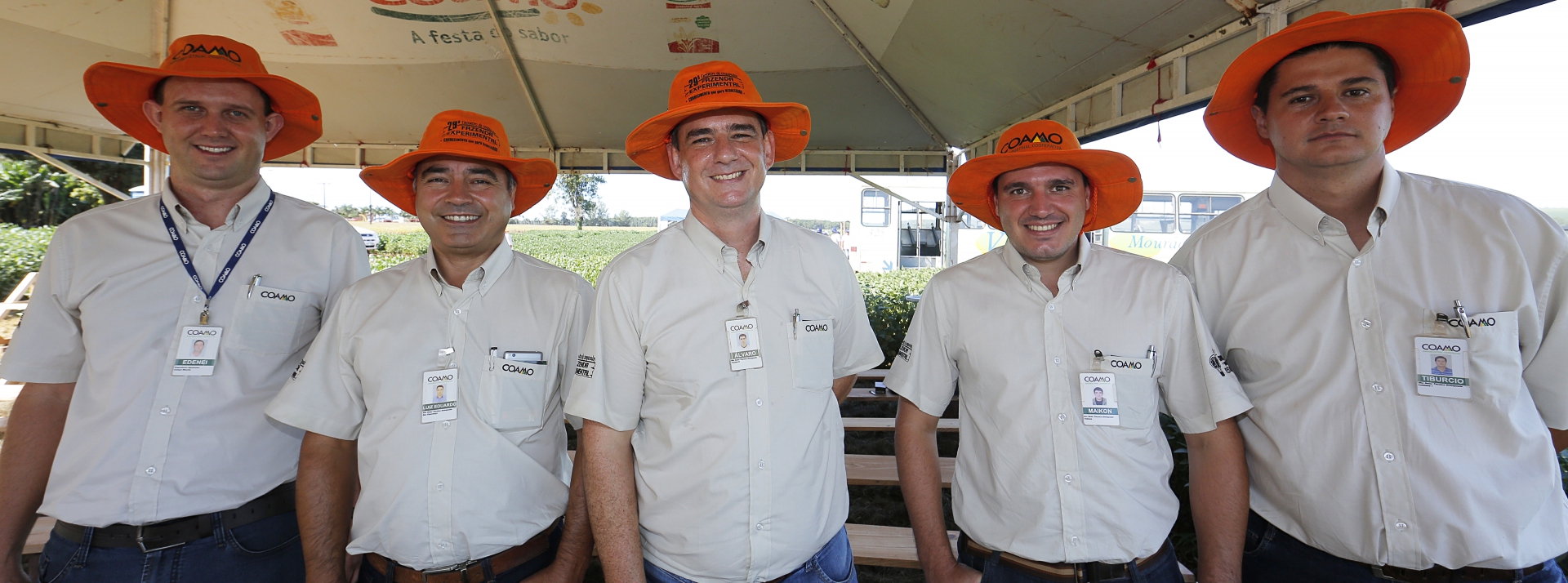 Diretoria da Coamo presente todos os dias para a abertura do evento: Aquiles Dias (Superintendente Técnico), Marcelo Sumiya (gerente de Assistência Técnica), Ricardo Accioly Calderari (diretor-secretário); Claudio Francisco Bianchi Rizzatto (diretor-vice-presidente) e José Aroldo Gallassini (diretor-presidente)