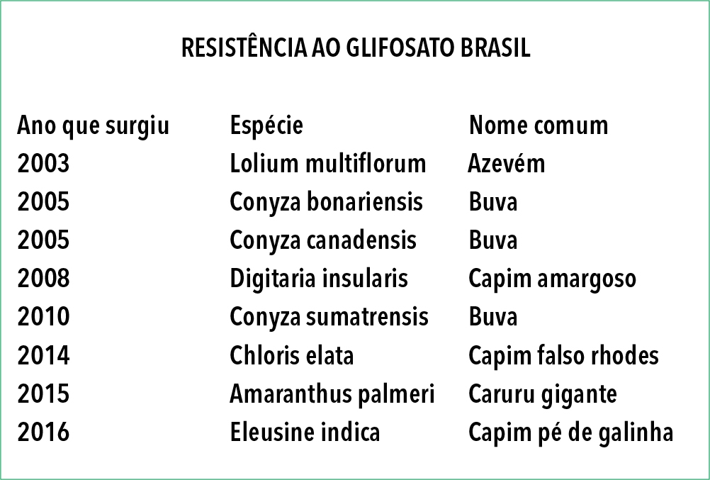 Não bastando as inúmeras plantas daninhas presentes no sistema produtivo rural, em 2016, surgiu o capim pé de galinha. Original da Malásia, a invasora do momento está em mais de 50 países do mundo e em mais 60 culturas, onde já é motivo de problema. No Brasil, essa planta daninha resistente ao glifosato foi encontrada na região de Campo Mourão, mais especificamente em Moreira Sales (Centro-Oeste do Paraná).