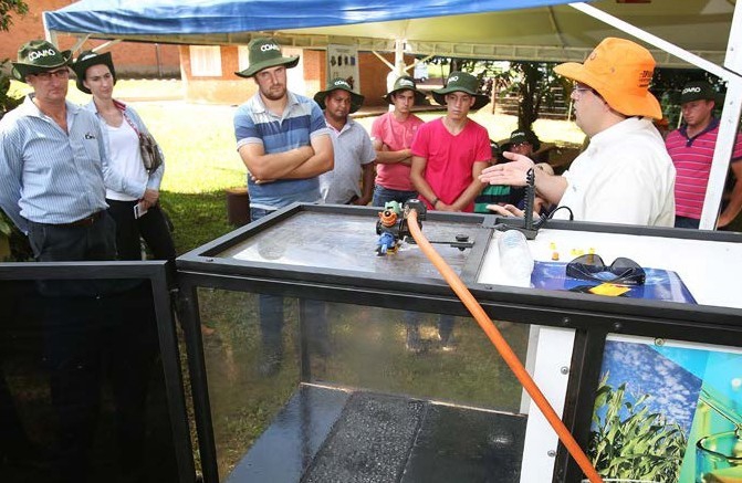 Durante o Encontro de Verão, a equipe de pesquisadores da Unesp trouxe uma demonstração exclusiva e diferente para que os associados da Coamo pudessem visualizar cada tipo de aplicação. “Além da teoria, tivemos três práticas, uma que desenvolve o tato para o cooperado sentir a gota fina e a grossa, outra que é visual para conseguir ver, uma terceira com luz negra para que ele pudesse visualizar a diferença de cobertura e penetração das duas gotas. Além do simulador de deriva, onde ele pode ver cinco classes de gotas em associação com vento. Qual seria o mais ou menos seguro”, elenca Rodolfo Chechetto.