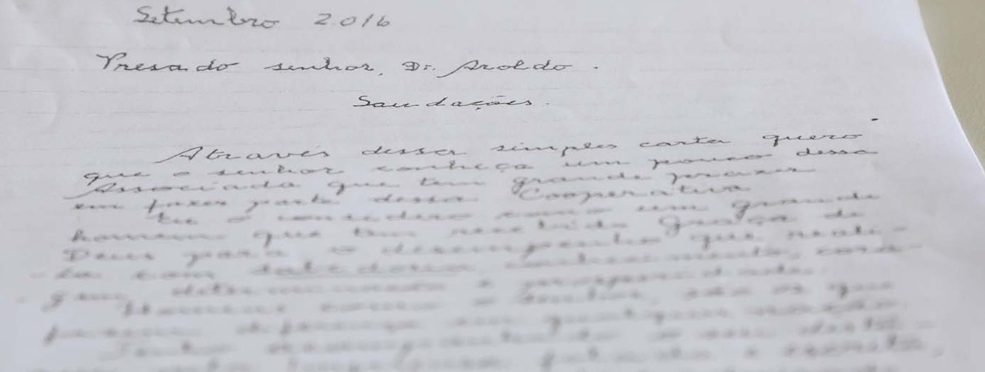 São várias as maneiras de expressar a gratidão, seja em palavras, gestos, cumprimento, dentre tantos outros. Nos dias atuais, também seria comum a utilização de meios eletrônicos, como e-mails ou redes sociais. Contudo, a opção da cooperada Eunisses Jandre de Andrade, de Campo Mourão (Centro-Oeste do Paraná), foi a de utilizar uma ferramenta tradicional: uma carta escrita a próprio punho e nela palavras de gratidão ao presidente da Coamo, José Aroldo Gallassini.
