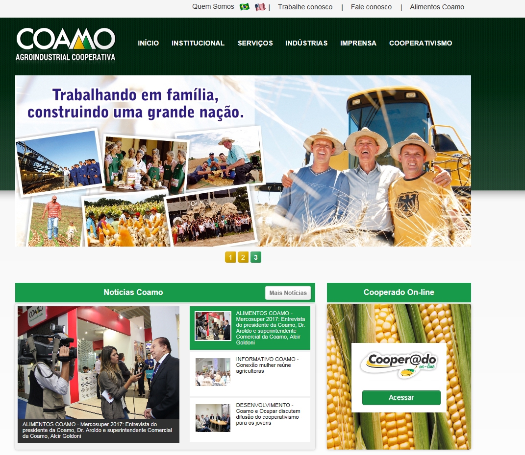 Com a rápida evolução tecnológica que o mundo passa, as empresas precisam manter-se atualizadas e antenadas com as novidades do mercado. Dessa forma, a Coamo sempre na vanguarda da evolução passa por mais uma etapa de desenvolvimento, com o site institucional da cooperativa adaptado ao formato responsivo.