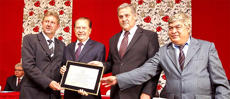 INVESTIMENTO - Ao receber o título, o primeiro no Mato Grosso do Sul e o 38º na sua trajetória entre os recebidos do Estado do Paraná e de municípios paranaenses, catarinense, o presidente da Coamo, José Aroldo Gallassini, disse do seu orgulho em ser cidadão lagunense. “É um honra muito grande ser cidadão desta terra, onde bravos agricultores deram mostra de sua capacidade e fé num futuro cada vez melhor.”