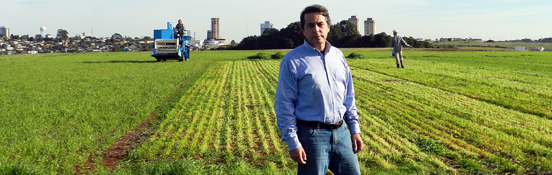 Osvaldo Vasconcellos Vieira: O trigo está envolvido nas mais diversas cadeias produtivas sobretudo no setor de alimentos, onde se insere como matéria prima para farinhas, biscoitos e massas, além de ração animal. A história do trigo no Brasil nasceu no século 16, junto com a sua colonização. O trigo está inserido no sistema produtivo agrícola do Brasil desde o seu descobrimento. Traz vantagens para a cadeia produtiva e para o produtor, pois possibilita a melhora química, biológica e física do solo pelo aumento do teor de matéria orgânica, aporte dos resíduos vegetais, sistema diferenciado de raízes, penetração e descompactação biológica do solo, além de contribuir para o controle de pragas, doenças e plantas daninhas. O trigo ainda otimiza o uso de mão de obra e máquinas da propriedade.