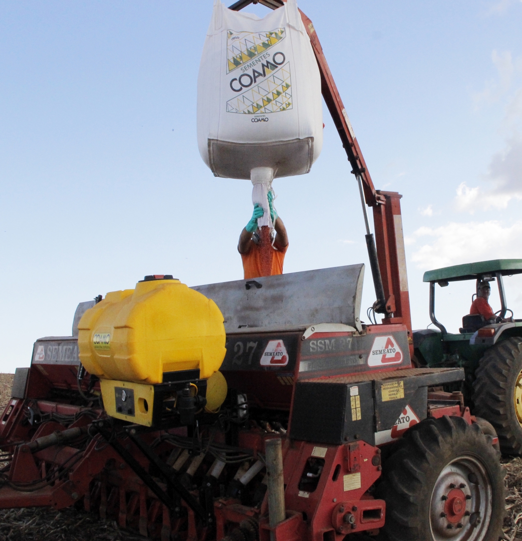 Os associados estão utilizando de maneira gradativa a inoculação em suco – uma prática inovadora com o fornecimento de máquinas pela cooperativa, que visa melhorar a tecnologia de aplicação e por consequência, a produtividade. “A inoculação em suco pode ser usada em gramíneas como milho e trigo, e no plantio de feijão e soja. Esta prática, além de evitar o contato direto do inoculante com a semente tratada, é acessível, eficiente e propicia economia de mão de obra na hora do plantio e melhoria no resultado”, afirma Paulo Roberto Bacini, encarregado da área de Distribuição da Coamo em Pinhão.