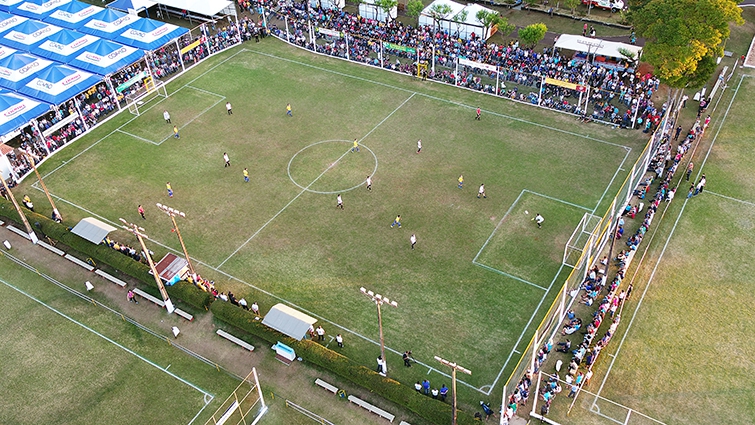 Vista aérea do momento do jogo da final. Grande público prestigiou a Copa Coamo até o fim