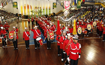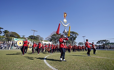 | Apresentação animou e encantou a todos. Durante a evolução, a Banda Marcial da Marinha do Brasil formou algumas palavras, entre elas Coamo |