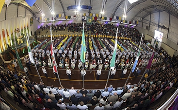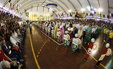 | Autoridades, diretoria da Coamo, cooperados/atletas e convidados durante o momento solene na abertura da Copa Coamo |