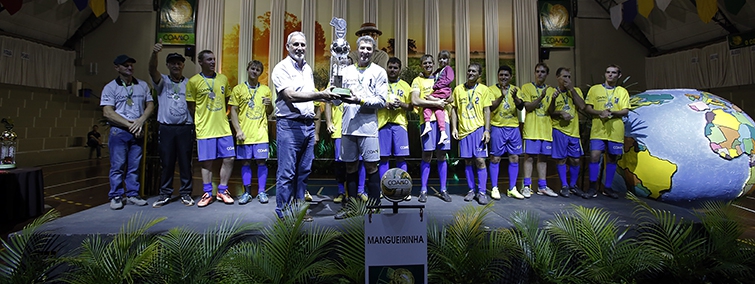 | Caçador/Linha Tortelli/Alto Pinhal, de Coronel Vivida, foi o campeão da 14ª edição da Copa Coamo. Na imagem abaixo, momento da entrega do troféu |