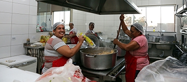 Na cozinha, as mulheres não mediram esforços para alimentar a todos |