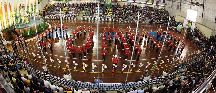 A pira contou com a apresentação e entrada de 33 jovens, representando os campeões regionais. Elas foram as madrinhas e estavam vestidas com trajes típicos de países que receberam e recebem os produtos in natura e industrializados pela cooperativa, que têm origem nos campos dos cooperados.