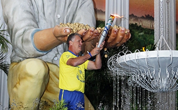 | A pira contou com a apresentação e entrada de 33 jovens, representando os campeões regionais |