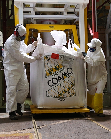 A Coamo disponibiliza a semente em embalagens de sacas de 40 Kg e Big Bags com 800 Kg.