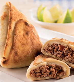 Recheio: Misture a carne com a água e os temperos. Esquente o Óleo de Soja Coamo e frite a cebola. Adicione a carne e todos os ingredientes do recheio e refogue até obter uma carne bem soltinha.
