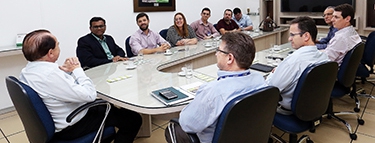 Visitantes de representantes da empresa Olam, de Singapura, Carlos Abudi Filho (Gerente de Originação), Márcio Burgardt (Gerente de Logística), Lucas Penteado (Trader Assistente), Catia Jorge (Gerente Geral), Felipe Franco (Gerente de Grãos e Complexo Soja), M. Sthyamurthy (Presidente da Divisão Amérida do Sul).