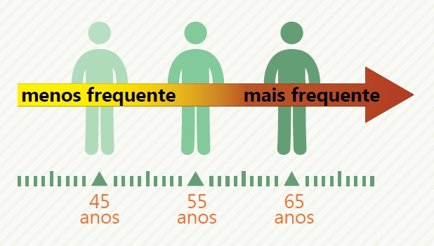 O risco aumenta com o avançar da idade. No Brasil, a cada dez homens diagnosticados com câncer de próstata, nove têm mais de 55 anos.