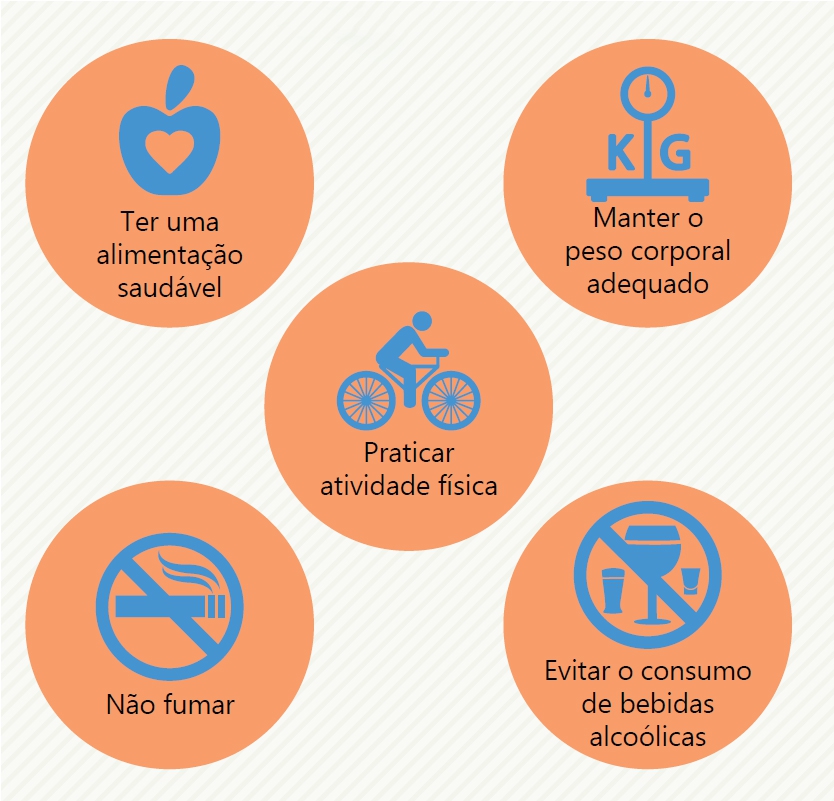 | Adotar práticas saudáveis diminui o risco de várias doenças, inclusive o câncer. |