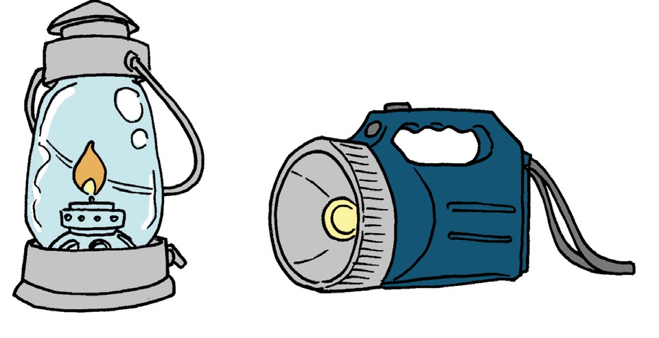 - Deve-se sempre ter em mão boas lanternas, acompanhadas de suas baterias e/ou pilhas e em locais de fácil acesso. A iluminação portátil é fundamental, pois a movimentação de animais silvestres e possíveis intrusos é mais difícil de se detectar à noite por causa da baixa luminosidade.