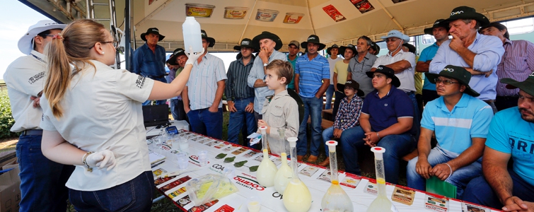 A universidade levou para o evento um simulador de misturas, desenvolvido pela equipe do pesquisador Rone Oliveira, onde foi possível demonstrar qual a melhor ordem de se fazer a mistura, como essa ordem influencia em todos os momentos da aplicação, como a mistura influencia no desenvolvimento da máquina(pulverizador) e o sistema de agitação e filtros do equipamento, entre outras características do processo de aplicação. “Quebramos, de certa forma, um pouco do mito de que somente um simples teste na garrafa pet não é o suficiente para dizer que a mistura está certa ou errada”, revela Oliveira, acrescentando que o mais importante é o produtor refletir da importância de melhorar a eficiência das misturas, como forma de obter melhores resultados no campo.