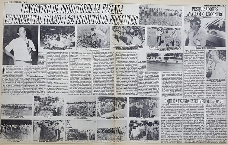 “Mil duzentos e sessenta produtores a campo percorrendo ensaios e experimentos; verificando ‘in loco’ o que a pesquisa agrícola tem a lhes oferecer; trocando experiências sobre as dificuldades de se produzir melhor e avaliando junto com os técnicos e agrônomos tudo o que foi observado.” Essa foi a chamada para a reportagem no Jornal Coamo sobre a primeira edição do Encontro de Cooperados na Fazenda Experimental, em março de 1989. De lá para cá, muitas coisas mudaram, novas tecnologias surgiram, sistemas foram implantados e implementados, assim como os desafios que fazem parte do dia a dia de quem trabalha no campo. O que não mudou, é a maneira como a Coamo se preocupa em atualizar os cooperados para que produzam, cada vez mais, e com sustentabilidade.
