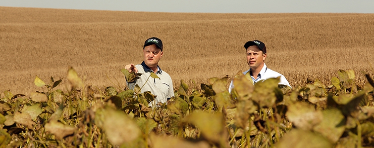 | Assistência Técnica da Coamo presta serviço visando produção sustentável e rentável. Cooperado Leandro Milanez com o engenheiro agrônomo Marcelo Johnny Ballão da Silva |