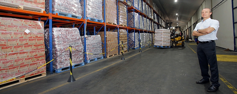 Quando os Alimentos Coamo já estão envasados chega o momento de organizar e separar as entregas para que cheguem até as gôndolas dos mercados, indústrias transformadoras, panificadoras e mercearias, com toda a segurança. Para isso, existe uma área que trabalha duro nessa etapa e garante que toda a força da cooperação continue: a superintendência de Operações e Logística. Conforme o superintendente da área, Airton Galinari, o trabalho que começou lá no campo só encerra quando o consumidor dos Alimentos Coamo recebe o produto ou o encontra em perfeitas condições nas prateleiras dos supermercados. “Na cadeia logística nosso cuidado está na armazenagem em nosso centro de distribuição para que não ocorra nenhum dano físico ou contaminação.”