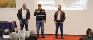 | João Luiz Ferri, Wilson Menin Júnior e Halisson Claus Welz Lopes durante apresentação do Internet Banking/Mobile em Campo Mourão |