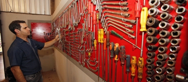 Em uma parte do barracão ficam as ferramentas, parafusos e acessórios. Todos separados por tamanho e forma de utilização. “Dessa maneira, tudo no seu lugar, evita a compra de produtos sem necessidade. Acontecia de não achar uma ferramenta ou uma determinada peça e comprávamos outra. Depois, acabava achando, pois estava jogado em algum canto. Isso tudo gera custo e sem necessidade.”