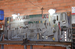 | Peças, parafusos e acessórios são todos armazenados e organizados por tamanho e prioridade de uso, assim como todas as ferramentas que são devidamente guardadas |